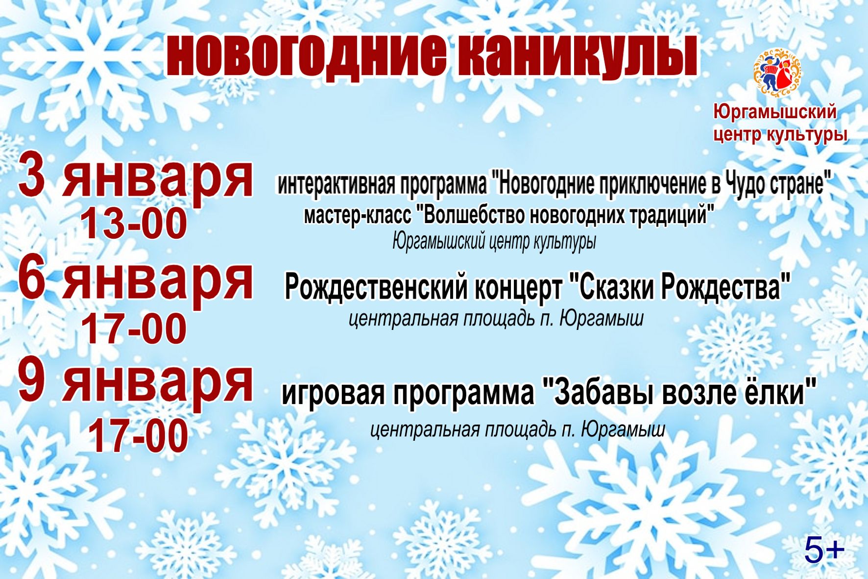 Вновь окунуться в атмосферу добра и волшебства вы сможете 13 января.Время уточняется. Следите за нашими афишами!